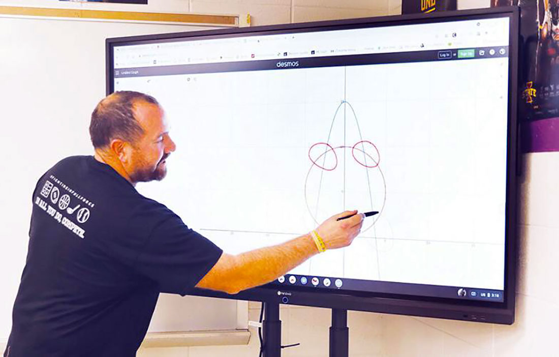 Nick Potts, a Denison High School math teacher, said he likes using the writing function of the panel; he writes over the top of graphs or uses the panel as a whiteboard to work on problems.