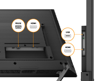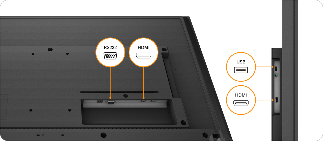 Intégrez facilement l’écran dans votre réseau géré en utilisant des commandes I/O, avec des ports USB, RS232 et trois entrées HDMI offrant une connectivité fluide et flexible.