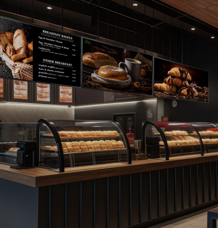 With enhanced brightness levels, your visuals stay clear and engaging—even in well-lit indoor spaces such as front windows, self-service areas, or deli counters.