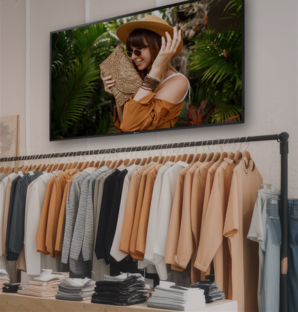 These commercial-grade displays support content via HDMI, DisplayPort, or USB, so you can simply plug in and play. No need for external players or complex infrastructure—perfect for restaurants, shops, or information signage.