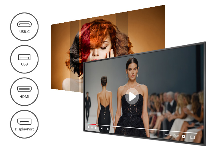 Effortlessly connect via HDMI, DisplayPort or USB to display scheduled content without the need for complex systems. These screens support straightforward plug-and-play usage as well as basic scheduling features—no built-in operating system required.