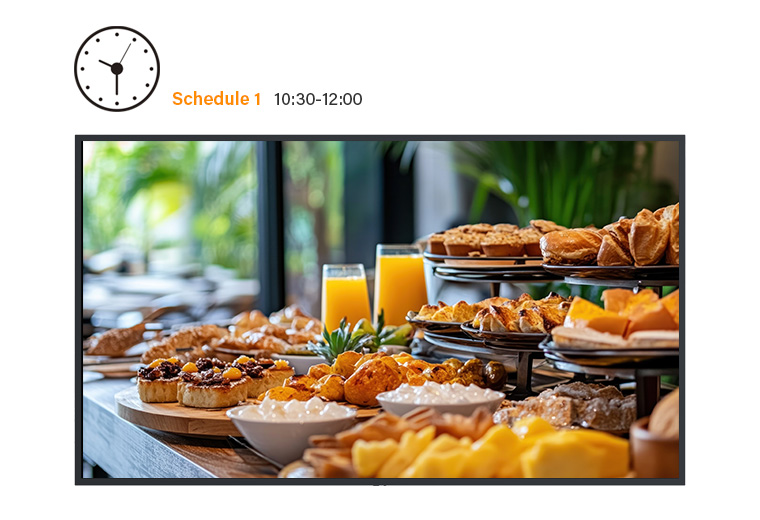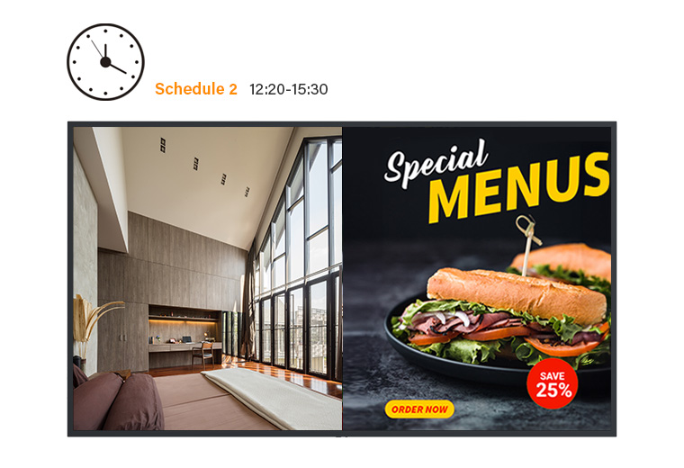 Schedule your content by time and date using easy on-screen menus—ideal for rotating daily offers, menu updates, or scheduled announcements.