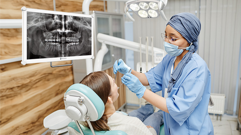 In consultation rooms, monitors are used to review 3D images and X-rays with patients, explaining treatment plans. Here, monitors need to display high-quality images that patients can easily see and understand. A sleek design that complements the clinic’s aesthetic can also enhance the professional image of the practice.