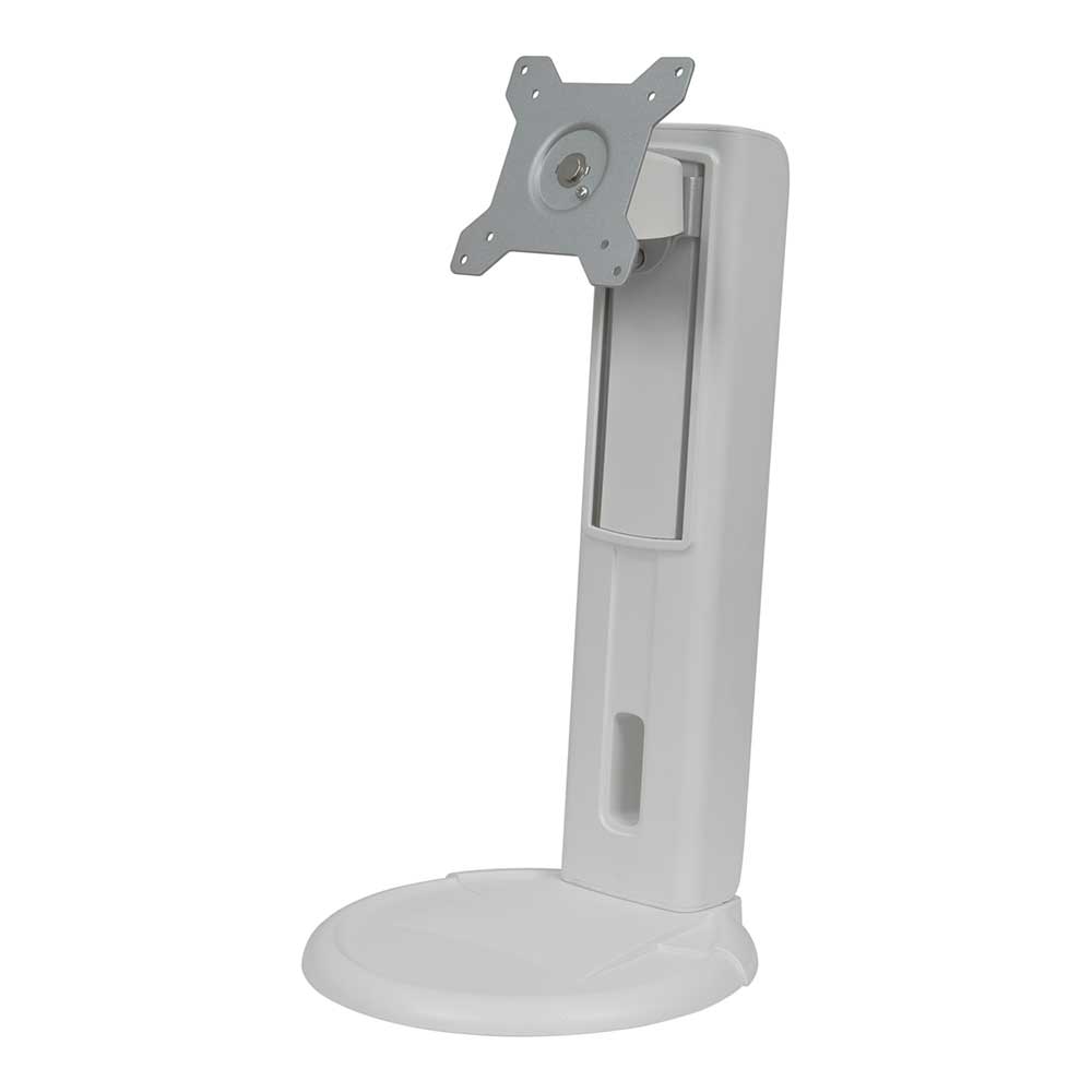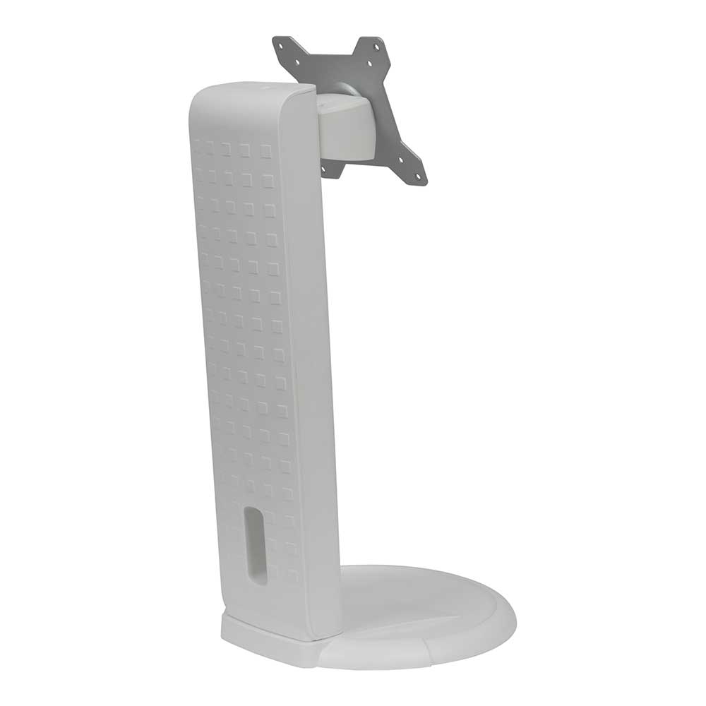 Adjust monitor height, swivel left to right, and even tilt and rotate for optimum viewing with the ES-02 White monitor stand, specifically designed for the DR-2202 dental monitor. Smart cable management routes and hides the cables behind the stand. This adjustable, highly durable, and VESA compatible design supports a wide range of display weights from 2 kg to 8 kg, providing a variety of viewing angles for maximum ergonomic comfort.