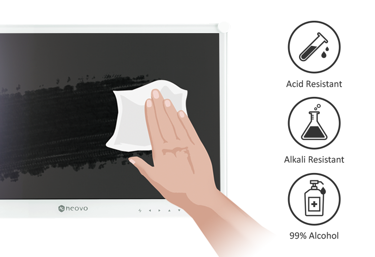 The MX-2402 24’’ clinical review monitor is designed for durability in diverse healthcare settings, featuring an impact-resistant IK10-rated metal casing and front-side IP65 NeoV Glass for dust and water protection as well as easy cleaning. Compliant with IEC/EN 60601-1 and IEC/EN 60601-1-2 medical equipment standards, DICOM Part 14 compliance, and a wide temperature range, it ensures excellent and reliable image performance in demanding medical environments, including medical laboratories, emergency departments, medical carts, and more.