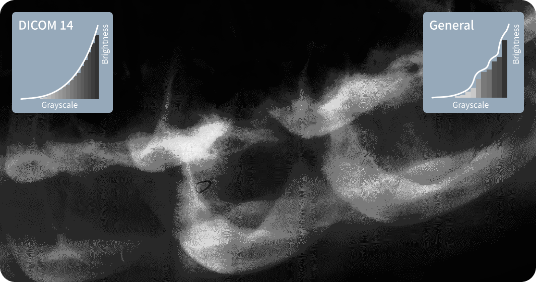 The preset DICOM mode meets medical imaging requirements to represent accurate and consistent medical images, allowing medical professionals to review with confidence.