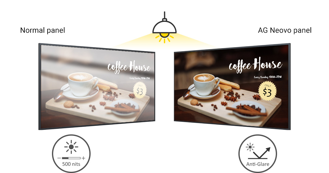 Featuring non-glare panels with a 25% haze, this display uniformly diffuses light across the screen, preserving the vibrancy and accuracy of the content for an optimal viewing experience.