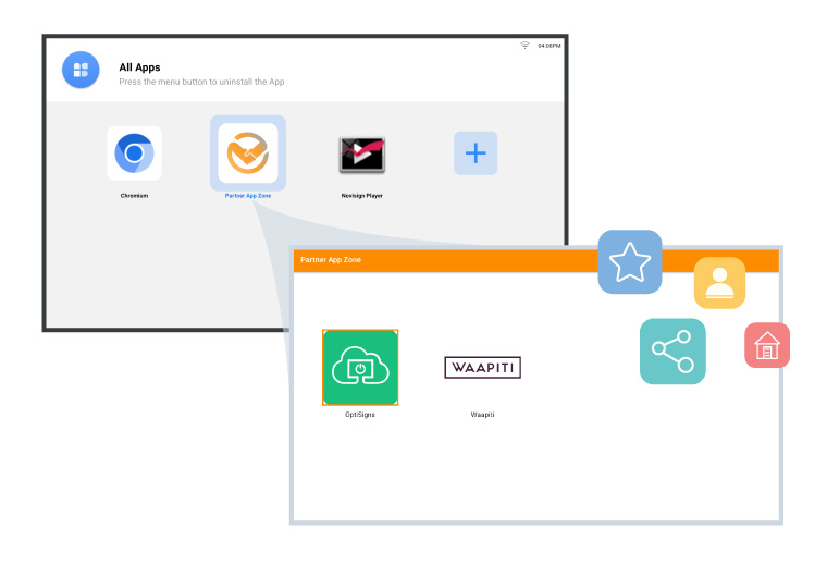 Access and install CMS software, offering more options, from our Partner App Zone. Transform your screens into dynamic platforms to captivate customers. Effortlessly manage content with robust, secure, and scalable digital signage solutions.