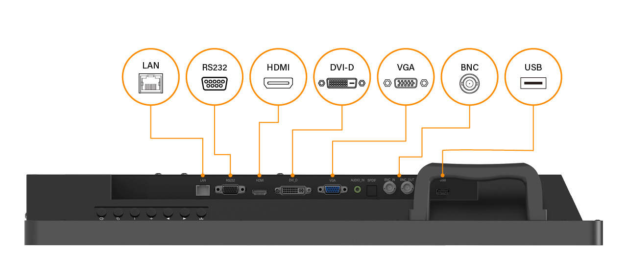 With support for 100 x 100 mm VESA mounts, the LCD display enables versatile installation options, including wall and ceiling mounts, enhancing space utilization and optimizing viewing angles for diverse surveillance setups.