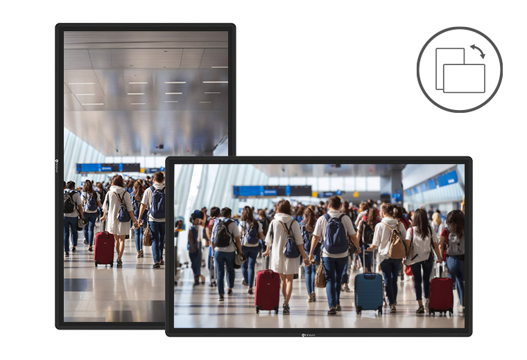 Designed for versatile installation, our commercial-grade display supports both landscape and portrait orientations, catering to the specific needs of any surveillance or information display setting.