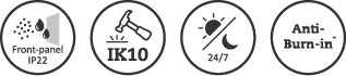 Experience outstanding durability with our IP22-rated LCD display, crafted to withstand dust and water. The front panel is enhanced with IK08 hardness glass, providing superior scratch resistance and maintaining clarity and resilience over time.