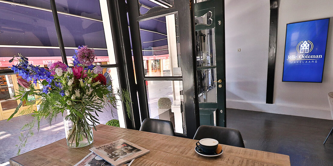 Mounted tightly above one another, 2 AG Neovo PD-55 LCDs somehow blend into the shop front of the beautiful, listed building in Enkhuizen at the same time as making Jelle Ooteman stand out. It’s easy to display new offerings, presentations, customer reviews, home viewings and more using the power of the 2 AG Neovo DSP-01 media players. For a more detailed look, customers can view the 55-inch NSD-5501Q installed inside the office, that can be tailored to a specific need with the Neovo Signage software. Awarded “Best Digital Signage Software”, this user-friendly platform makes it easy to add, modify or remove any campaign playlist with just a computer and a reliable internet connection. In fact, it’s so easy, you can do it from home as the team at Jelle sometimes do.