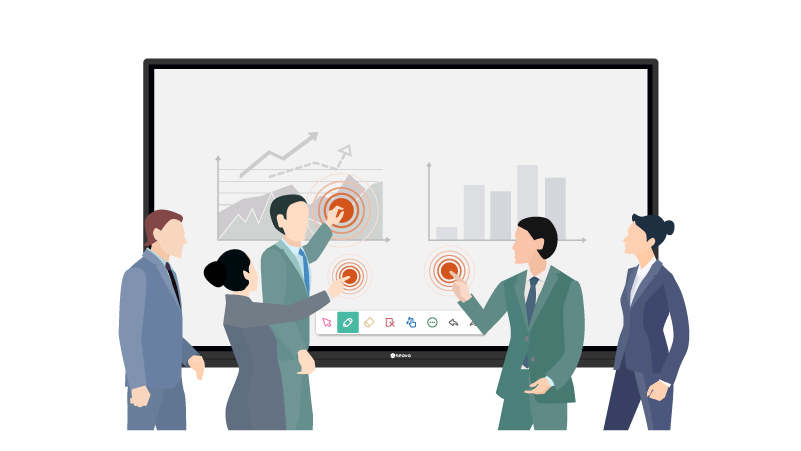 透過整合即時註解工具以增強生產力,讓會議參與者能夠輕鬆地點擊、滾動、縮放和在文件上書寫,提高參與度並加快會議進行。Meetboard 互動式電子白板搭載 20 點多點觸控技術,簡報者只需使用一根手指即可在螢幕上點擊和標註,或使用兩根手指滾動和縮放、直接使用手掌擦除筆觸的功能 — 同時讓兩位與會者都能在白板上執行動作。