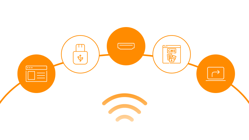 這種集中化管理內建於一站式數位電子看板的雲端內容管理系統(CMS),讓企業主能夠遠端管理內容、排程播放清單,並監控顯示設備的運作狀態。無論使用筆記型電腦、平板或智慧型手機,都能隨時隨地輕鬆操作,確保數位看板運作順暢且內容即時更新。