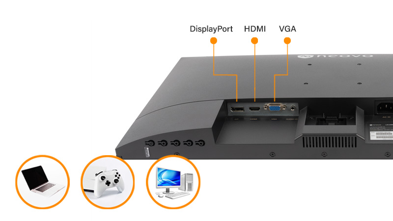 需確認螢幕支援的連接埠類型,例如 HDMI、DisplayPort 或 VGA 等,確保能夠連接 PC 或其他外接喇叭等設備。