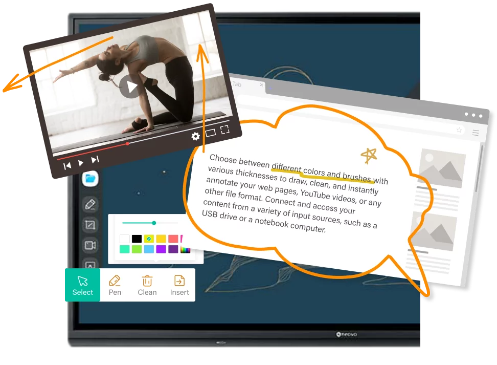 開啟註記小工具,在網頁、圖片或多媒體影音文件上輕鬆標註或繪圖,與團隊夥伴展開一場精彩絕倫的協作會議。