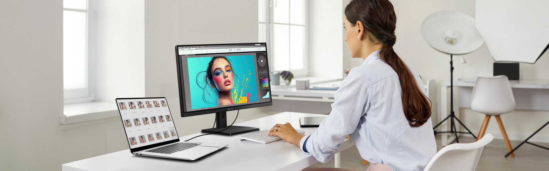 EM2451 擁有 3840 x 2160 UHD 解析度與高達 185 PPI 的像素密度,畫面清晰度較 27 吋 4K 螢幕提升約 13%。更高的像素集中度提供無與倫比的清晰度與精準度,讓每一個細節銳利可見,完美滿足專業創作者對畫質的嚴苛需求。