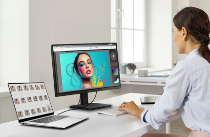EM2451 採用 10-bit 色彩技術,能顯示更平滑的漸層與更精確的色彩還原。進階的處理技術有效消除色帶與失真現象,為設計、影像編輯與內容創作帶來專業等級的視覺效果。